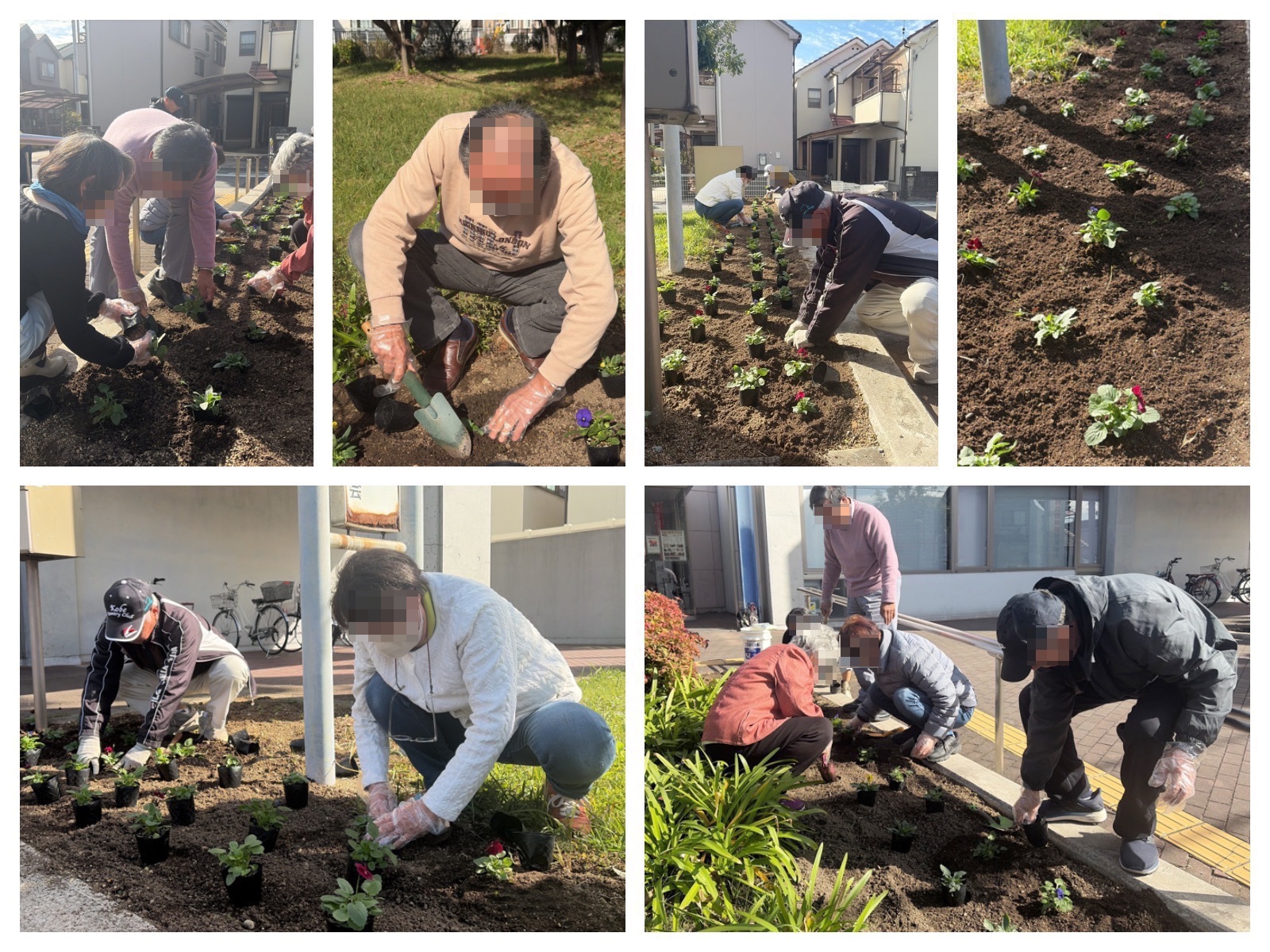 加古川市みどりの管理事務所から加古川市花とみどりのまちづくり用として配布いただいたビオラ約120本を公民館前の花壇に植栽しました。