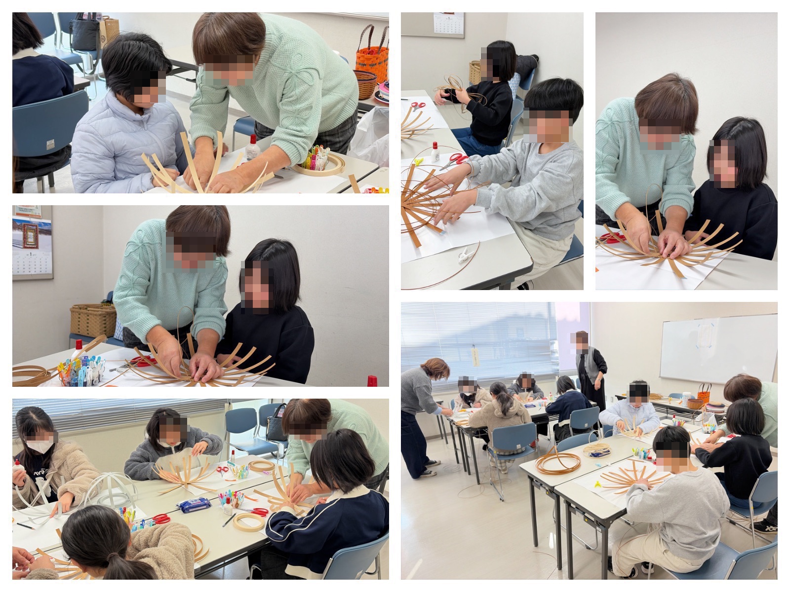 少し難度の高い「かご作り」体験でしたが、講師の先生の丁寧な指導と受講生の熱心な取り組みにより、誰もが素晴らしい作品を仕上げることができました。