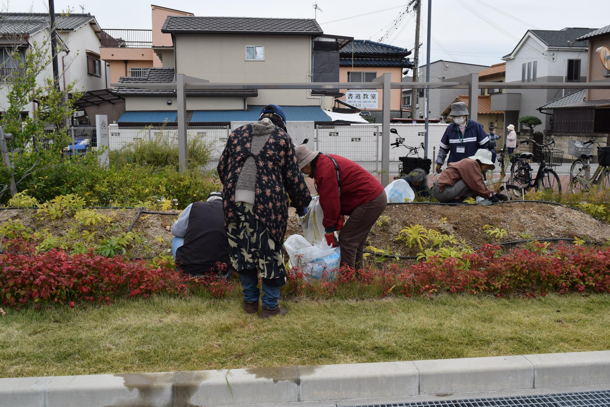 後には、東加古川公民館草花ボランティアのフラワークラブ(クリスマスローズの会)の皆さんが、ペチュニアの苗を植栽してくださいました。