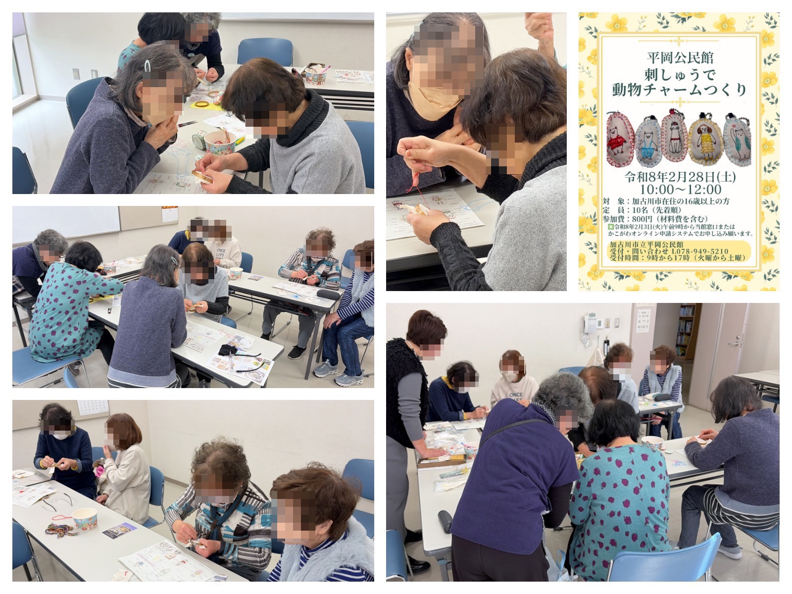 平岡公民館での新たな講座として、今回「刺しゅうで動物チャームつくり」教室を開講しました。