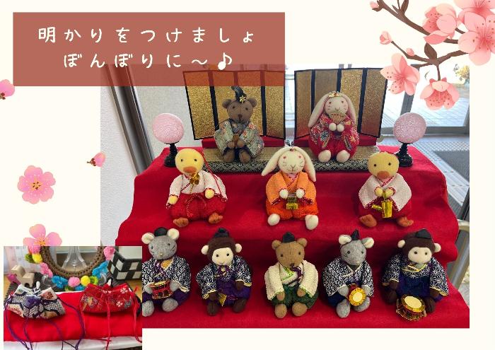 立春が迎えた後のタイミングでお雛様を飾りました。春の到来を心待ちにしながら、桃の節句を祝いたいと思います。本館のお雛様は一風変わっていますが、かわいらしさ満点です。