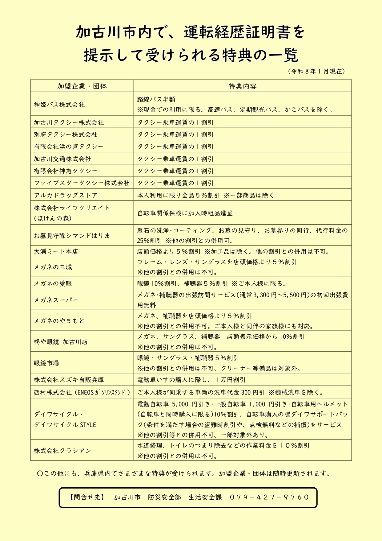 受けることができる特典の一覧は兵庫県警察のホームページに掲載されています。