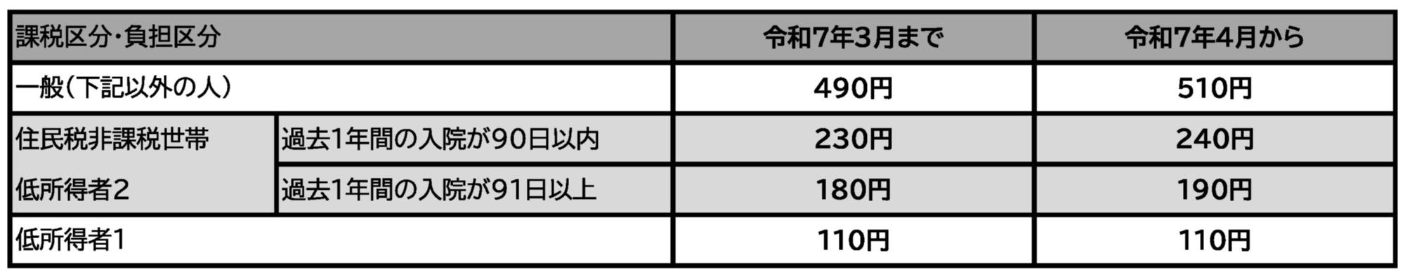 ※令和7年4月より以下のとおり、ご負担いただく標準負担額が変更となります。