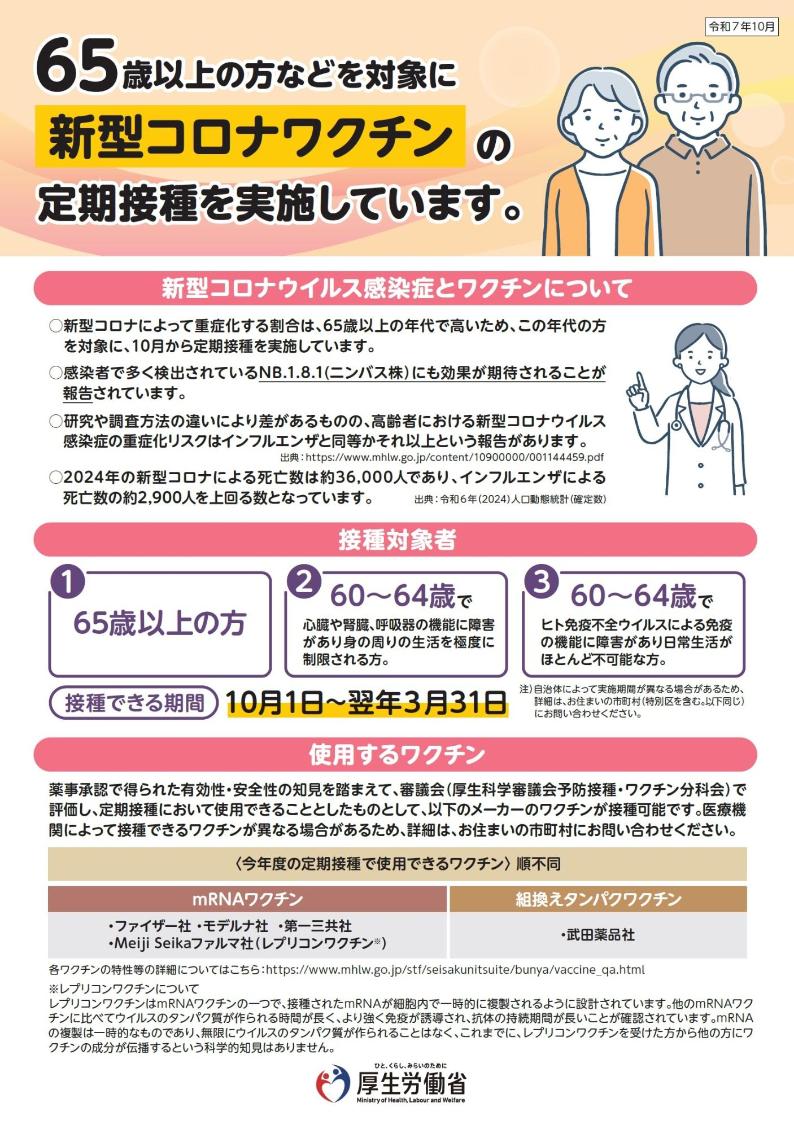 新型コロナワクチンの定期接種のご案内に関するリーフレット(厚生労働省) (PDFファイル: 1.9MB)