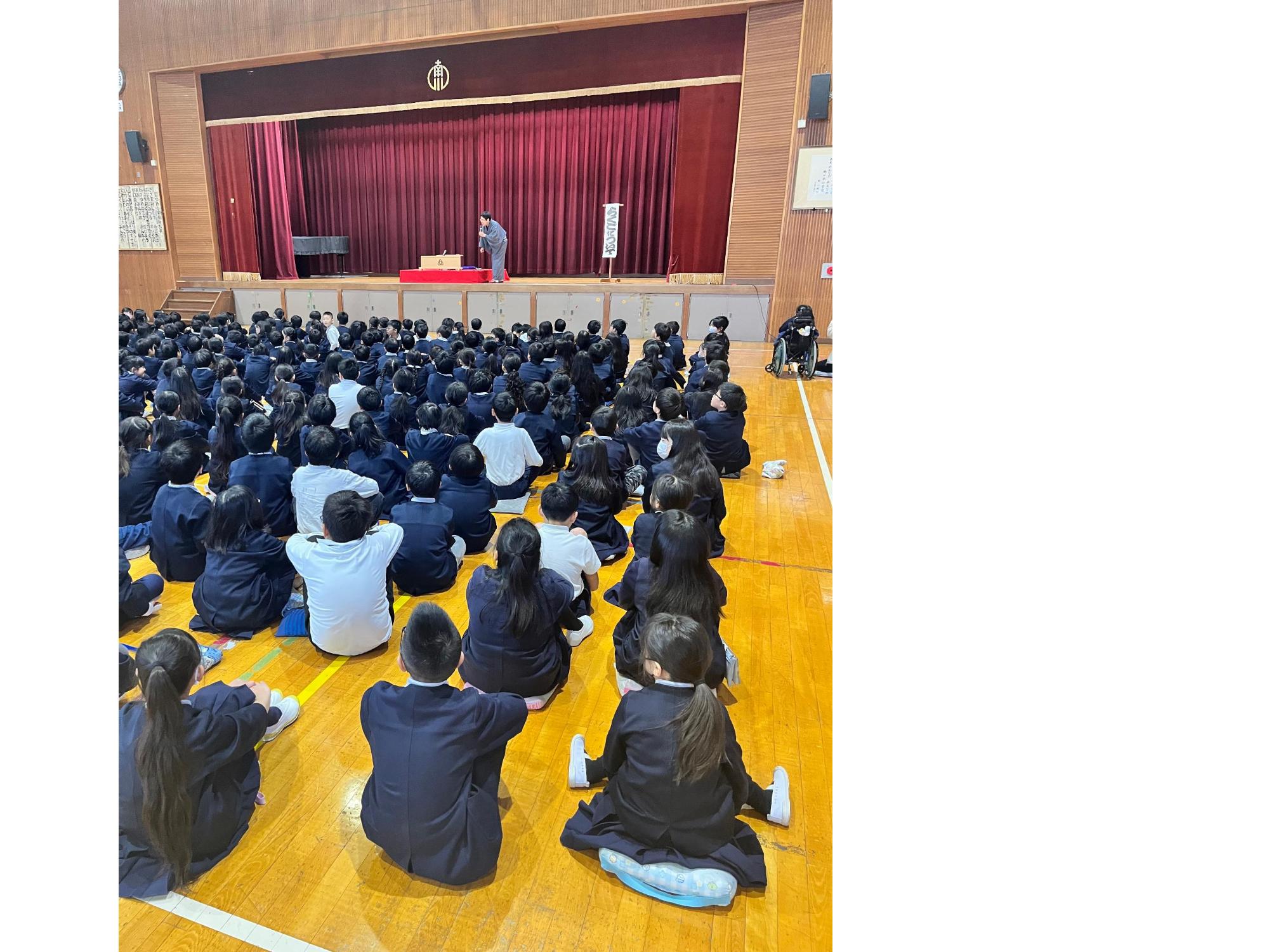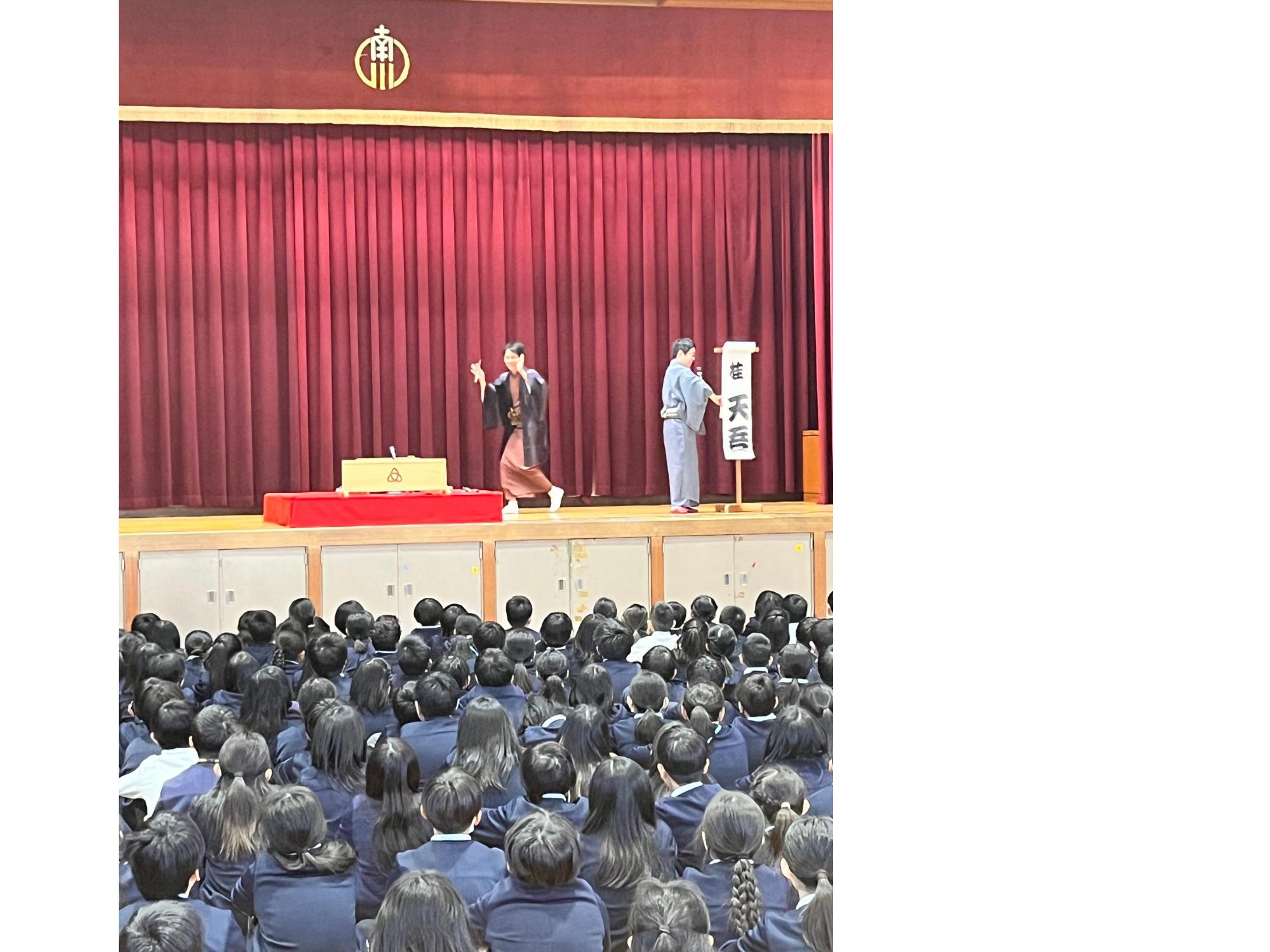 本日は芸術鑑賞会がありました。今年は桂小鯛さん、團治郎さん、天吾さんをお招きし、落語を鑑賞しました。初めて見た子どもたちが多かったですが、ダジャレやオチが分かりやすく、たくさん笑える楽しい時間になりました。