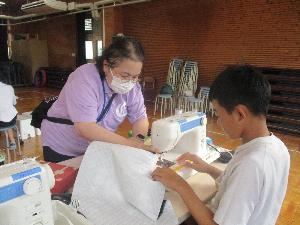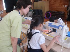 9月の6年生のナップサックづくりに続き、現在は5年生のエプロン作りでお世話になっています。
