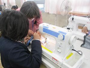 まずは上糸、下糸かけから、まっすぐ縫うコツまで、全て一からご支援いただいています。