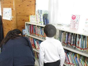 1年生の読みたい本に、6年生が合わせてあげていました。