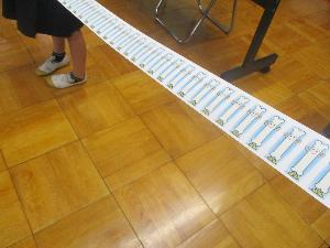 『ほねほねくん』227本並んだテープは、とても長いです。