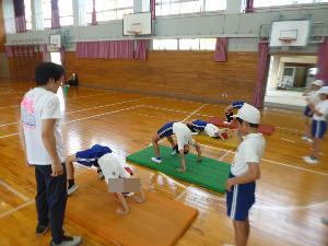 本校では体操クラブから外部講師をお招きし、体育の授業ではなかなか高められない本格的なスキルについて学ぶ機会を設けているところです。