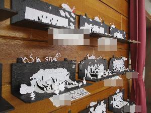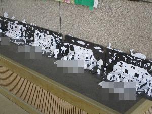 毎年、5年生で取り組んでいますが、今回の新たな工夫は、壁面の上にも切り絵を置いた児童がいて、それを皆が共有したことです。