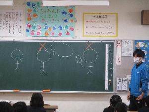日頃、集会は児童発信で楽しく・・・が多いですが、今回は生活指導担当が、大切な話を全校生に伝達・指導しました。