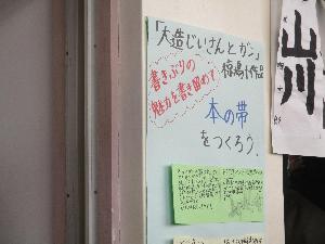 5年生ではこの3学期、全ての子どもたちが協働しながら全力で読み深めた国語「大造じいさんとガン」の魅力を伝える本帯が掲示されていました。