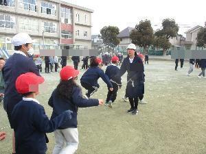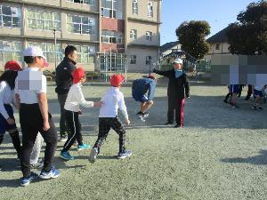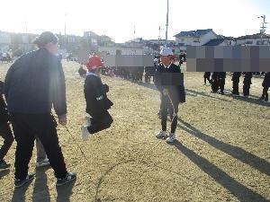 1,2年生は、体育委員と担任の先生で、縄回し役を。