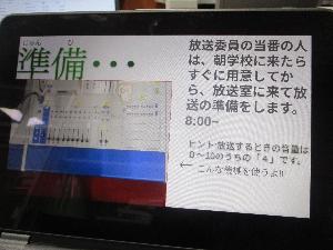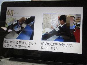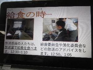 放送委員会が、自分たちが当番で行っている仕事の一日の流れについて、動画とスライドで紹介してくれました。