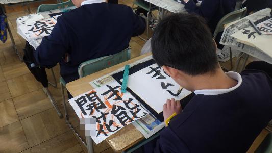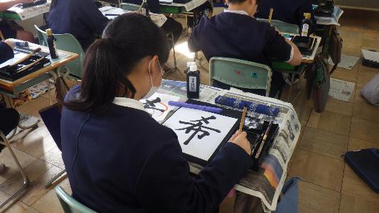 卒業まで残り2週間ほどになりました。6年生の教室では、今の自分にとって一番大切にしたい言葉を色紙に書く、書道の特別授業が行われました。