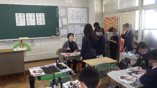 今回、書き方を教えてくださったのは校長先生です。2時間の授業の中で、子どもたちは一人ひとり校長先生からアドバイスをもらいながら、一生懸命に練習を重ねました。