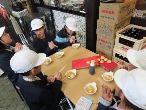 明石といえば明石焼き。お出汁につけて食べるのは見たことが無い子どもたち、恐る恐る食べてみると、「めっちゃ美味しい!」と大喜びでした。