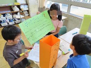 学習のまとめとして、1年生に向けて「いきものランド」を開き、調べたことを紹介しました。