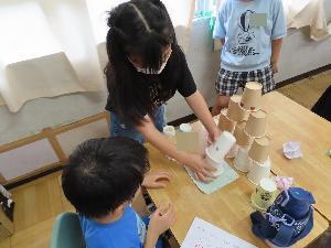 ぴょんコップ、知ってる?教えるね トントン相撲、1年生が勝っても一緒に喜ぶよ