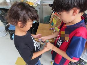 1年生に楽しんでもらうことを目標に、グループで話し合いながらおもちゃ作りに励んできましたので、その様子をご紹介します。