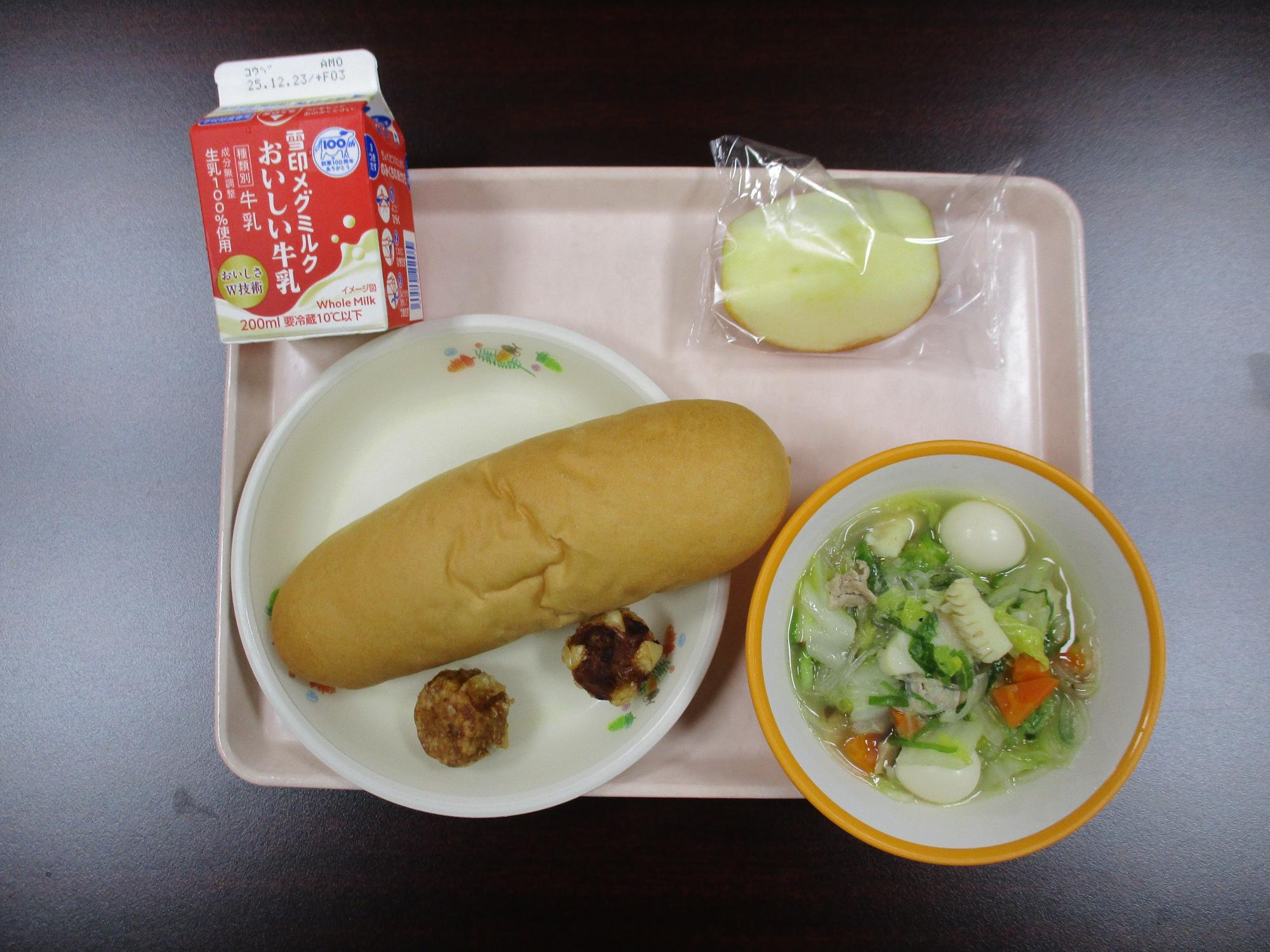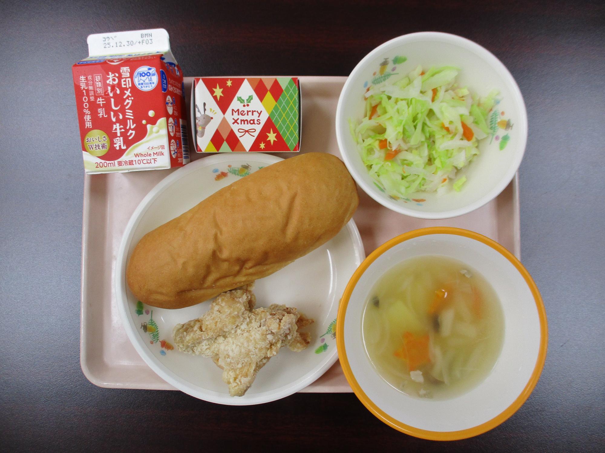今日の給食 12/18 🎄クリスマスメニュー スープに星がはいってます