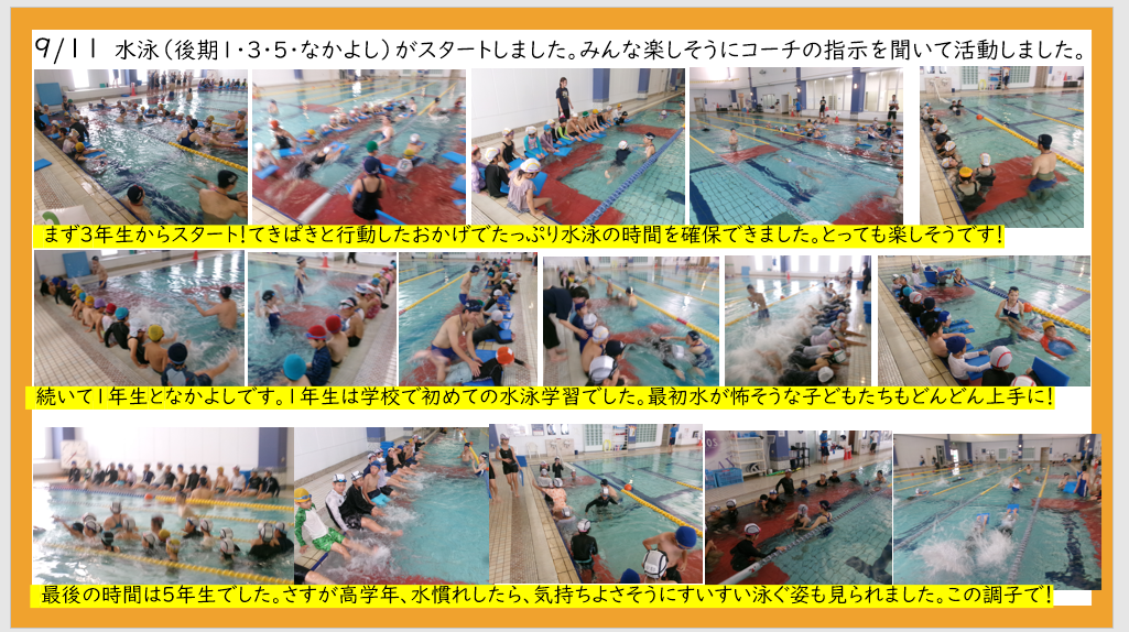 9月11日 後期水泳学習スタート