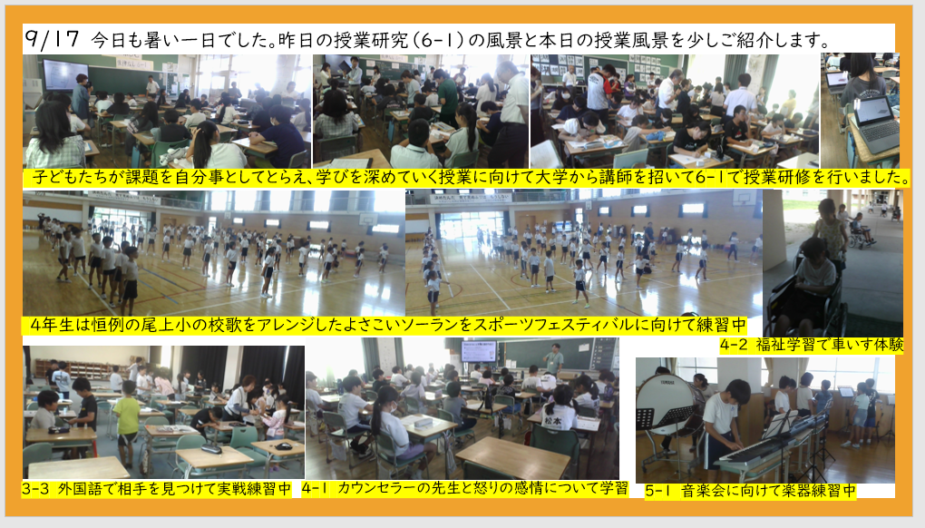 9月17日 昨日の授業研究と本日の授業風景から