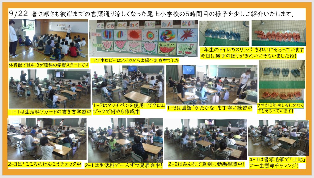 9月26日 1・2時間目の授業風景から
