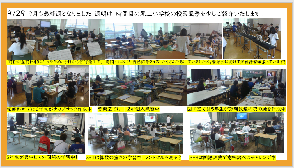 9月29日 1時間目の授業風景から