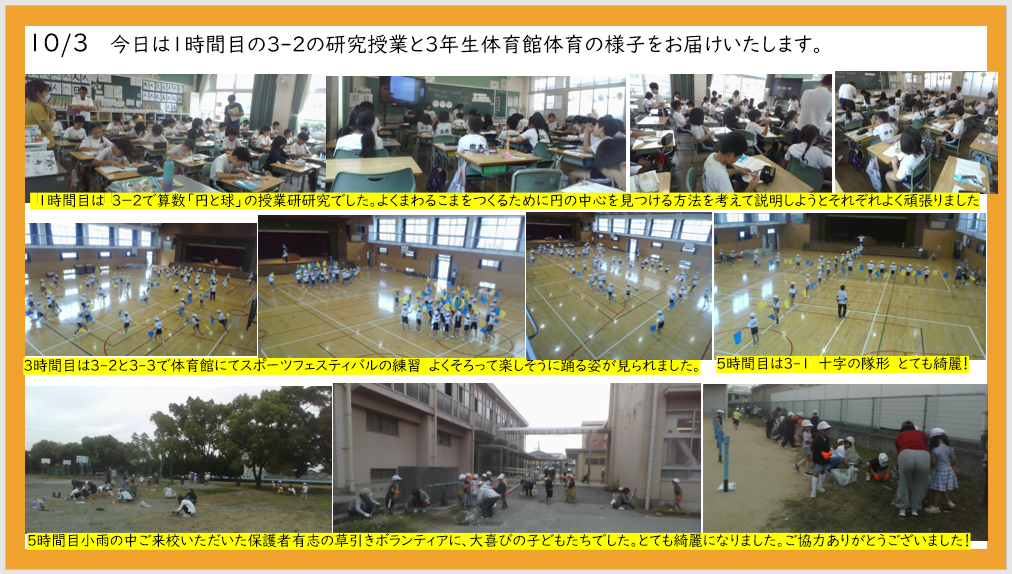 10月3日 本日の授業研究 3年体育 1年草抜き活動