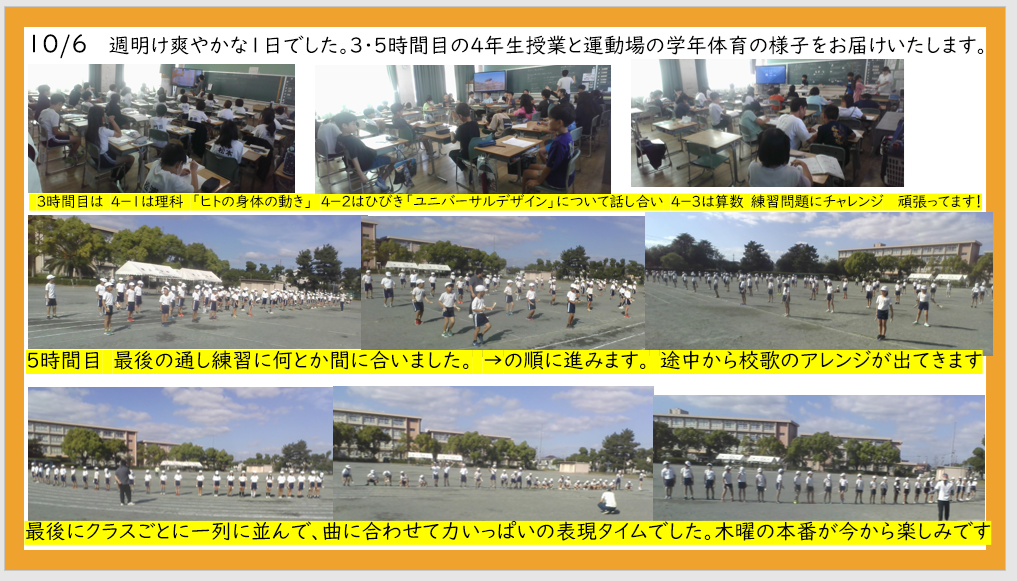 10月6日 4年生の授業・学年体育から