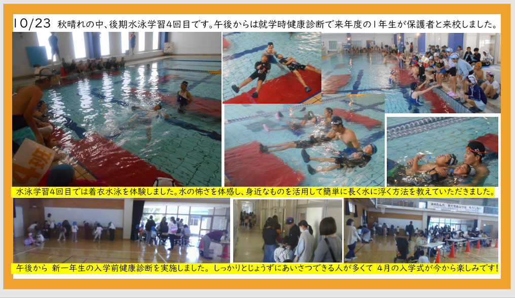 10月23日 着衣水泳学習 就学時健康診断