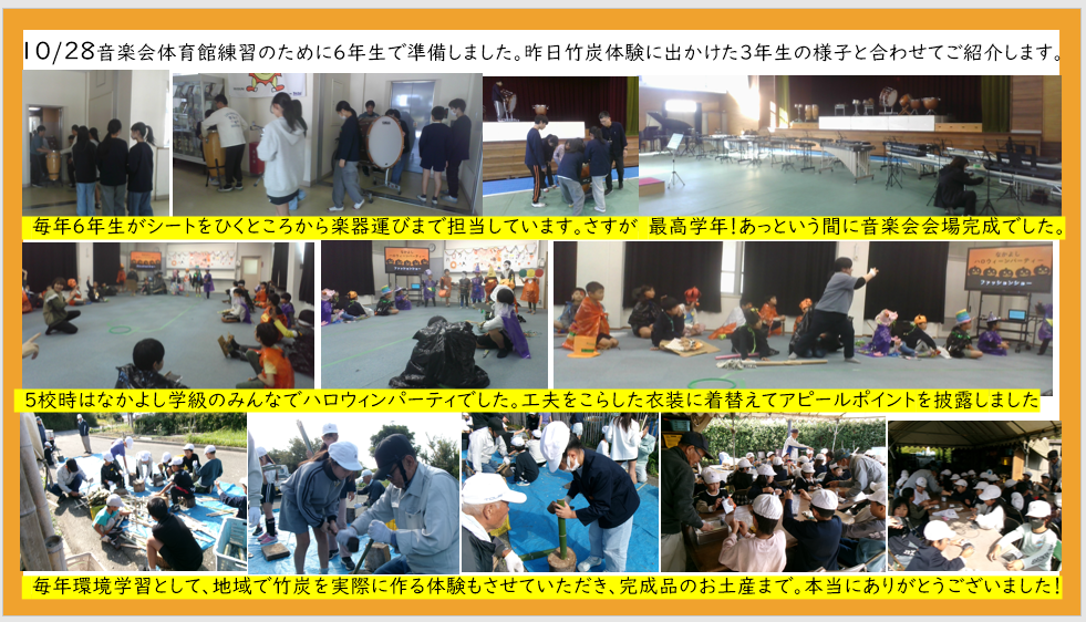 10月28日 音楽会準備 ハロウィンパーティ 竹炭体験