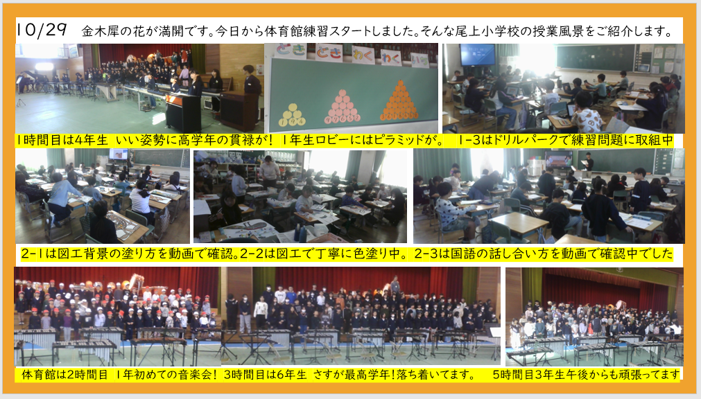 10月29日 音楽会 体育館練習スタート