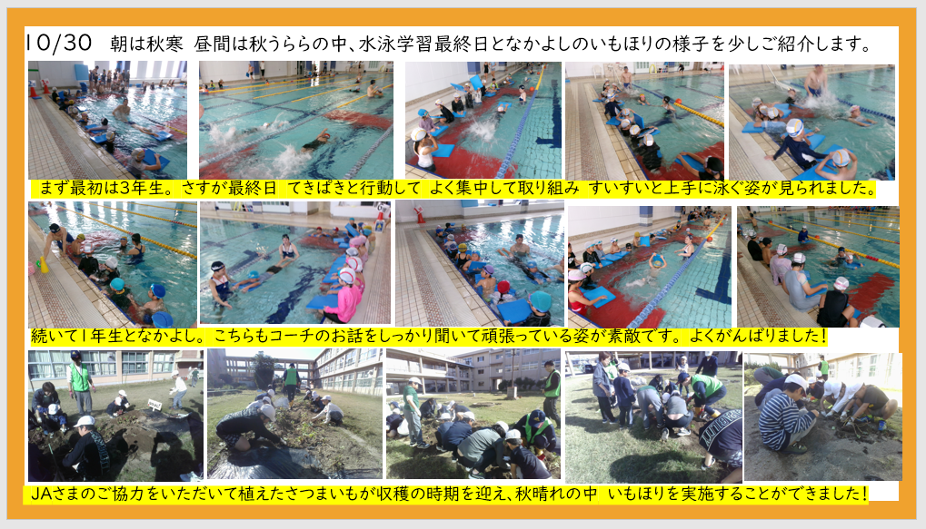 10月30日 今年度最後の水泳学習 なかよし いもほり