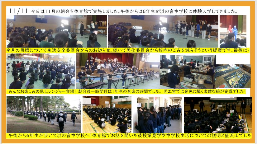 11月11日 11月の朝会 オープンジュニアハイスクール