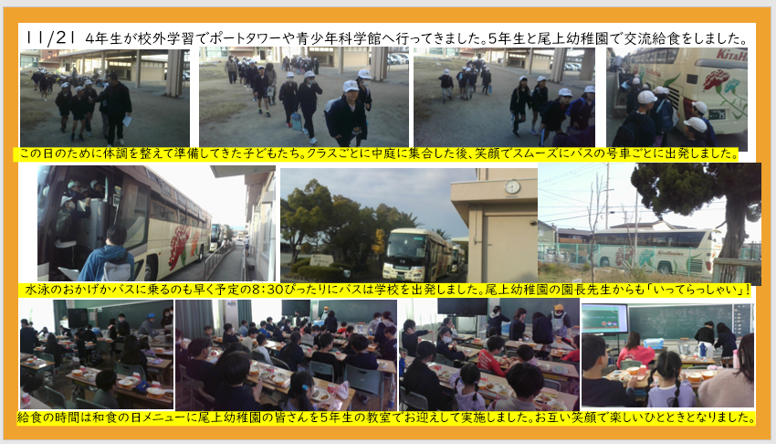 11月21日 4年校外学習 5年生尾上幼稚園と交流給食