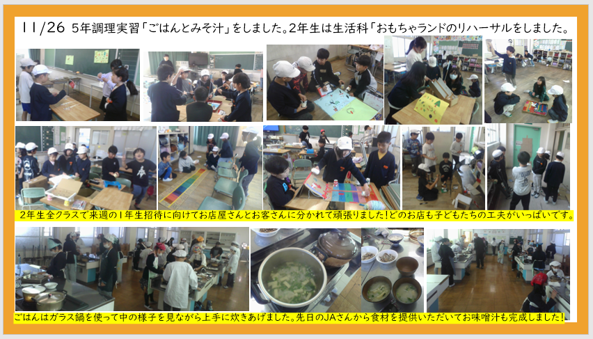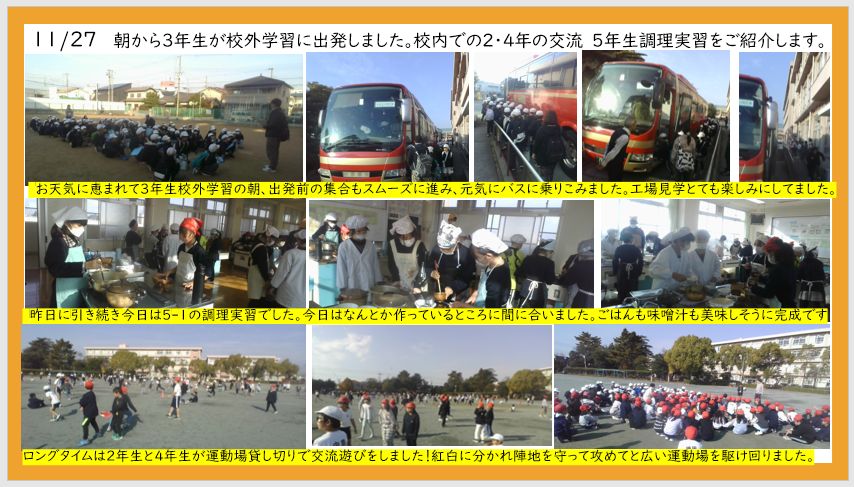 11月27日 3年校外学習 2・4年交流遊び 5年調理実習