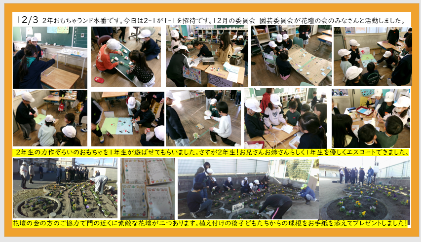 12月3日 2-1おもちゃランド本番 園芸委員会と花壇の会の皆様との活動