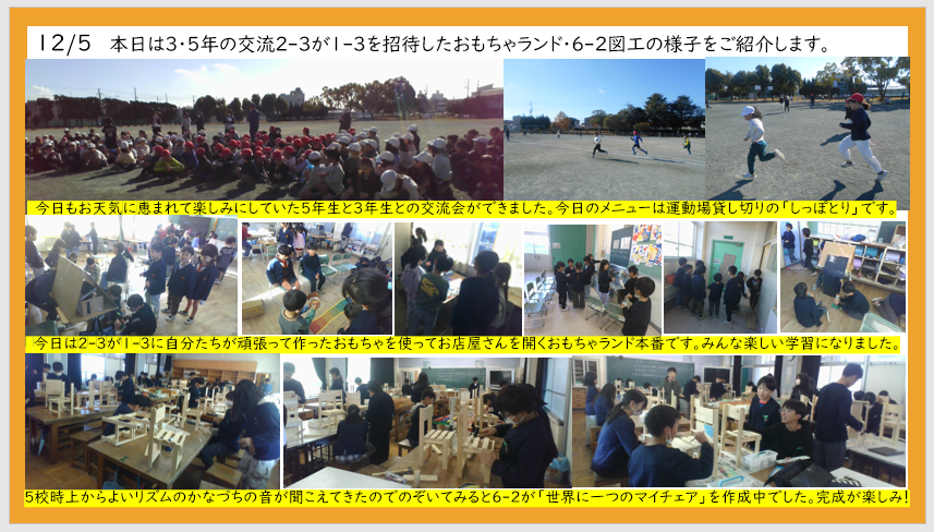 12月5日 3・5年交流会 2-3おもちゃランド 6年工作