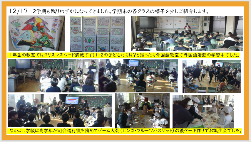 12月17日 1年生の教室 なかよしクリスマスパーティ