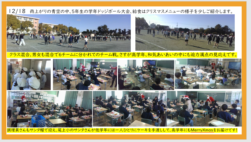 12月18日 5年学年ドッジボール大会 クリスマスメニュー