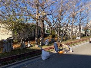 草集めのほかサクラの水やりも