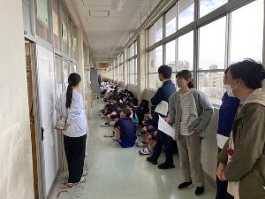 南海トラフ地震等を想定し、身の安全を守る行動をとりました。2年生は「かむかむメニュー」の学習をしています。明日の給食はいい歯の日メニューです。