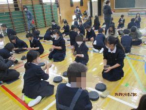 各クラス6チームに分かれてクラス対抗で9試合を行いました。どう動けばパスをもらえるのか、どの辺からならゴールに届くのか試行錯誤しながらゲームが展開されました。思うように操作できず悔しい思いもしました。最後に何事にも挑戦してみること、努力を続けてみることと教えていただきました。体が不自由になってもひたむきに努力されてきた方たちから熱い思いを感じることができました。