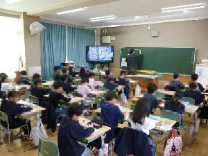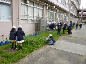 理科も初めて習う教科です。タブレットを持って校庭に出かけ、自然を観察しています。テントウムシを探していますが、見つかったでしょうか?