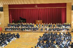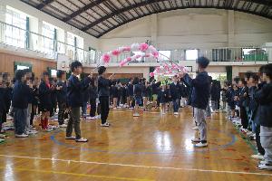 1年生からも工夫を凝らしたお礼の言葉がありました。最後も6年生と一緒に、花道を通って退場していきました。各所に笑いもあり、温かい雰囲気の会になりました。児童会の人の司会進行ぶりも素晴らしかったです。1年生が、これからの学校生活が楽しみになるような会でした。