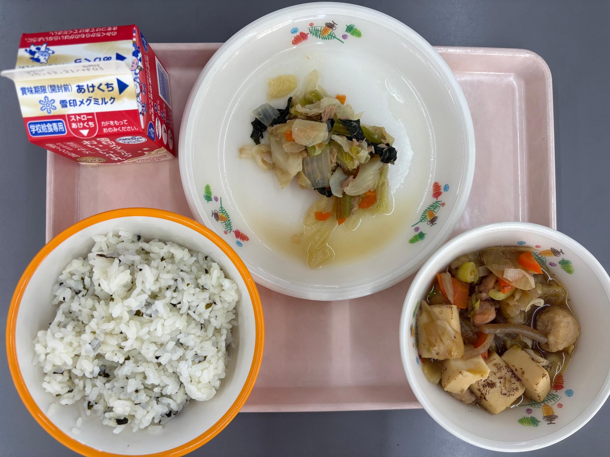 わかめごはん、牛乳
