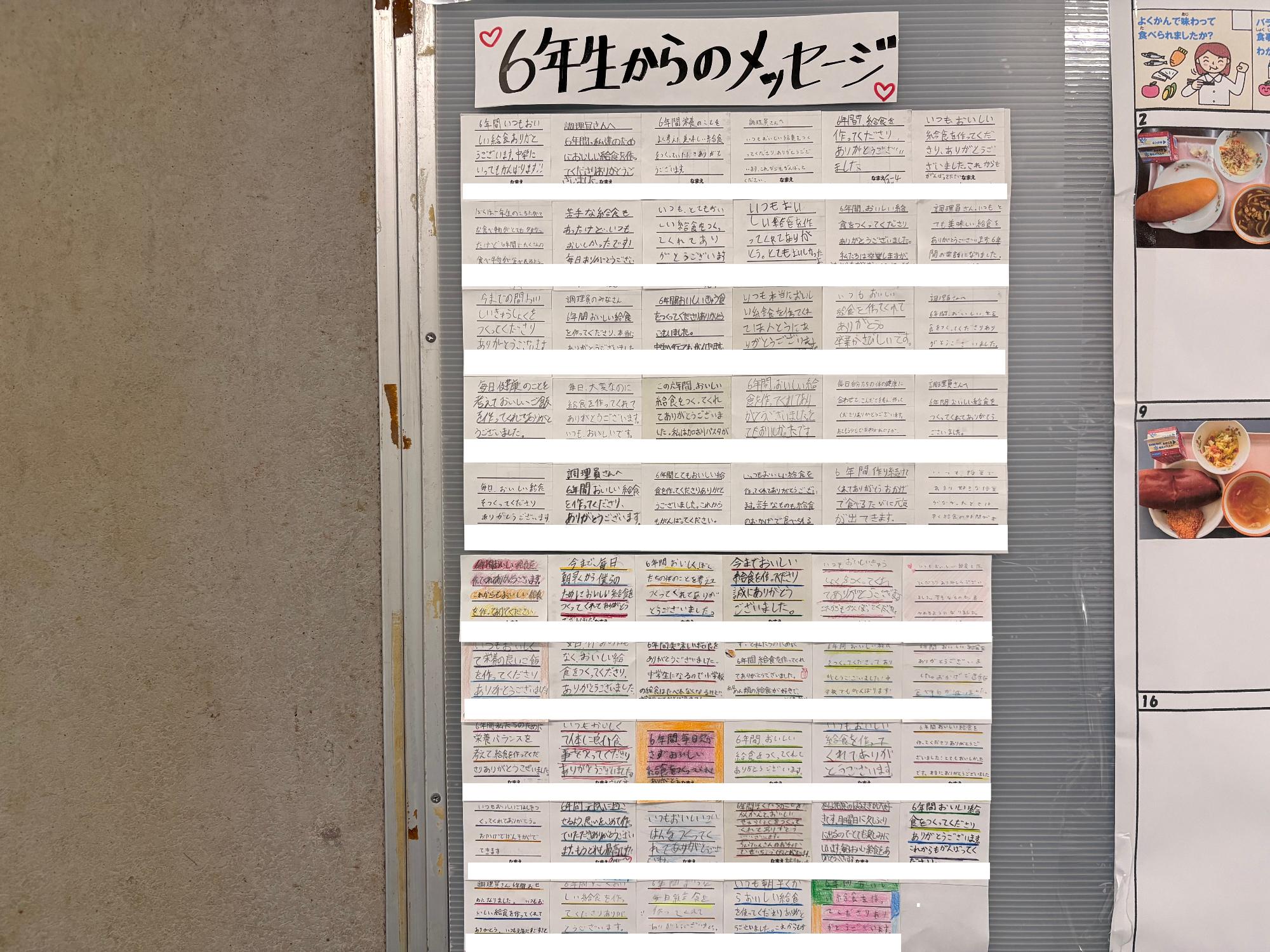 6年生からお手紙をいただきました。給食室への感謝の言葉が書かれていてとても嬉しい気持ちです。